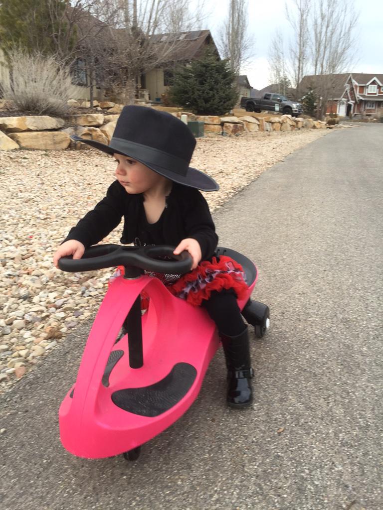 Zetta love's hats and scooting!!! Sporting her V-day outfit!